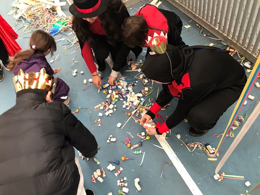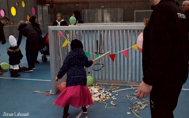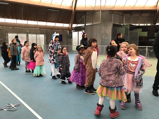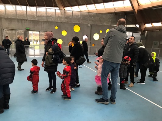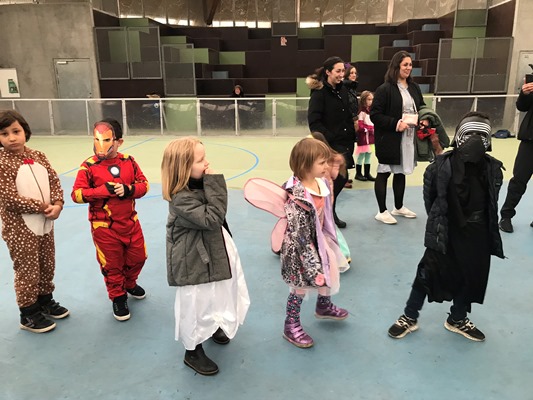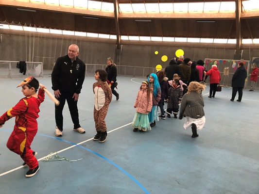 130 børn og voksne var mødt op for at have en hyggelig fastelavnsfest sammen, så hallen var fuld af fine prinsesser, seje superhelte, flotte dyr og feer, farlige skeletter og mange andre fine udklædninger.