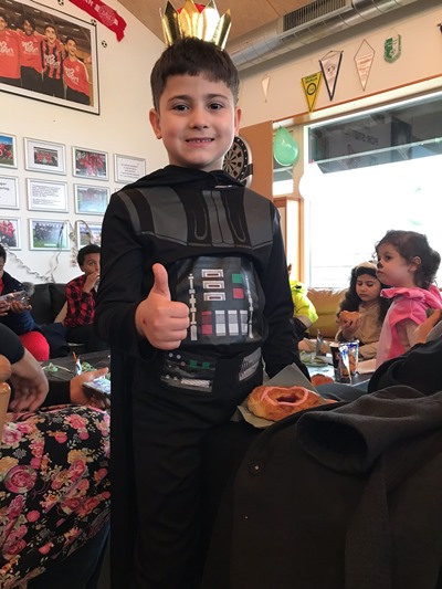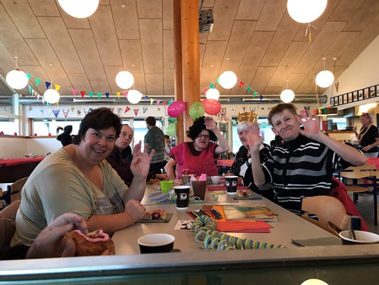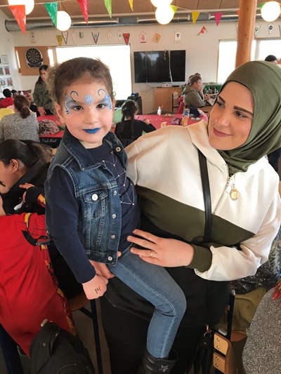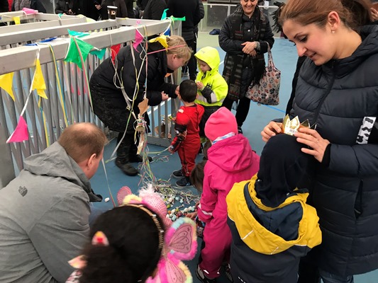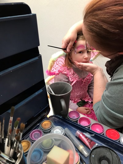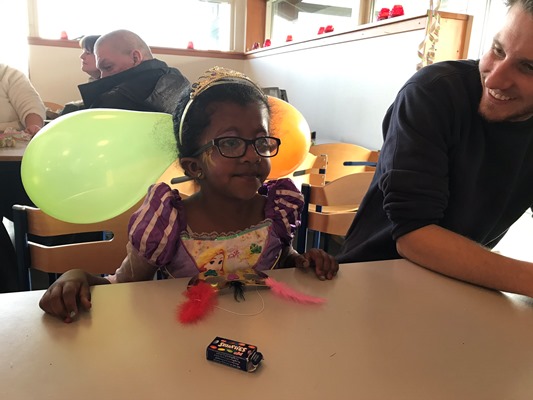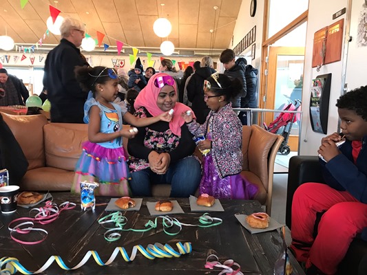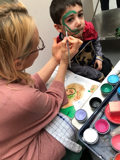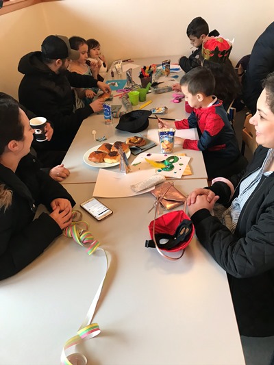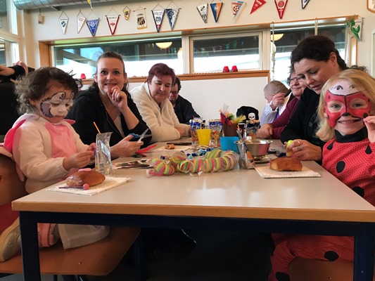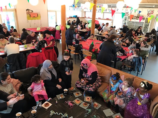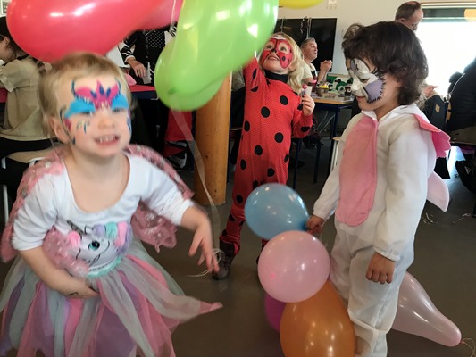 Her var der fastelavnsboller og varm kakao, og man kunne også blive malet i ansigtet og lave flotte fastelavns-masker. Det var en rigtig hyggelig dag, hvor børnene dansede ballondans i de flotte kostumer, og der blev grinet og hygget ved bordene.
